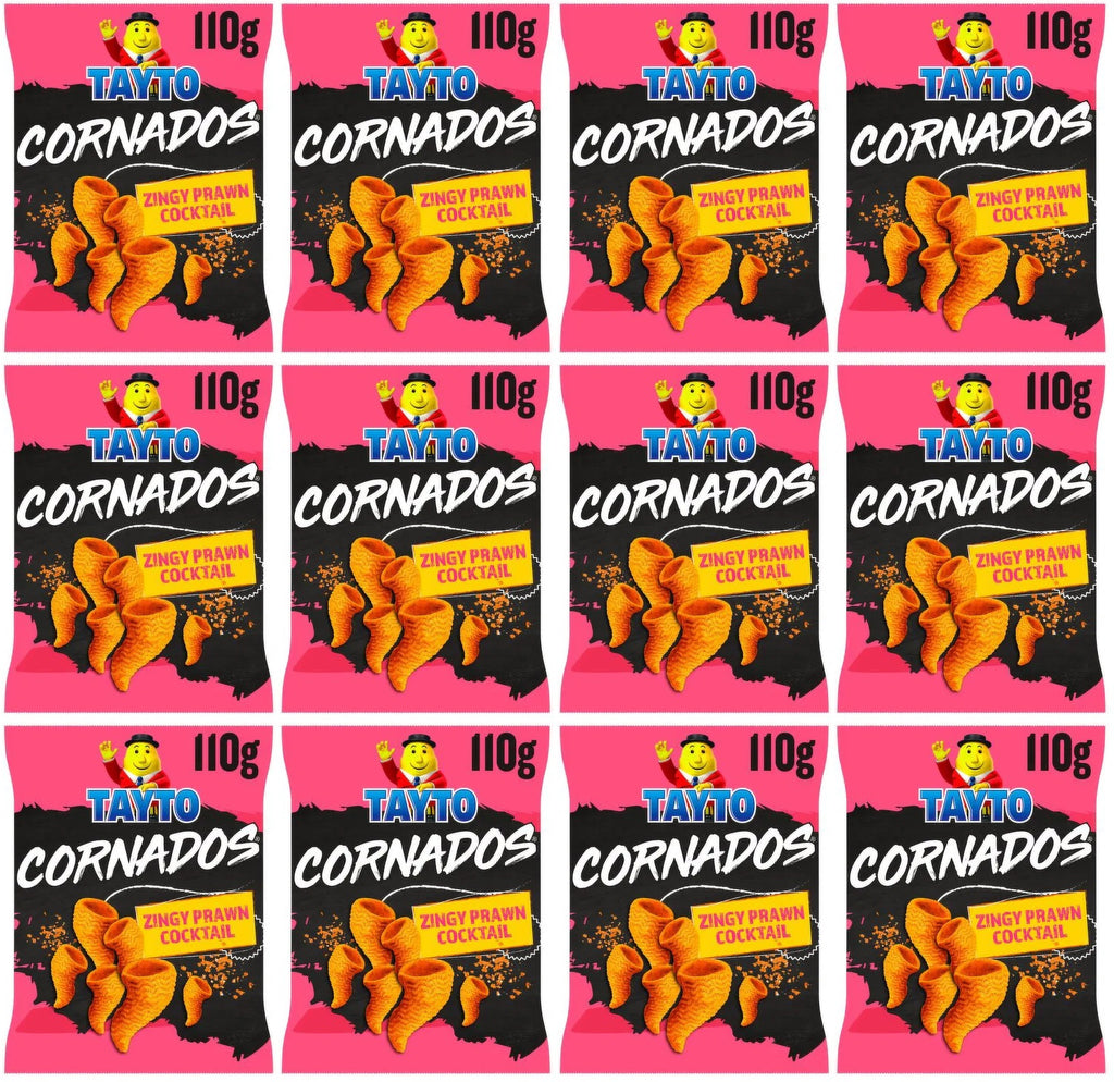 In summary, 12 x Tayto Cornados Zingy Prawn Cocktail Flavour 110g is a must-have for anyone who enjoys bold flavours and crunchy textures. Perfectly packaged for freshness and convenience, these crisps are sure to become a staple in your snack collection. Treat yourself today and experience the zingy delight that Tayto Cornados has to offer!