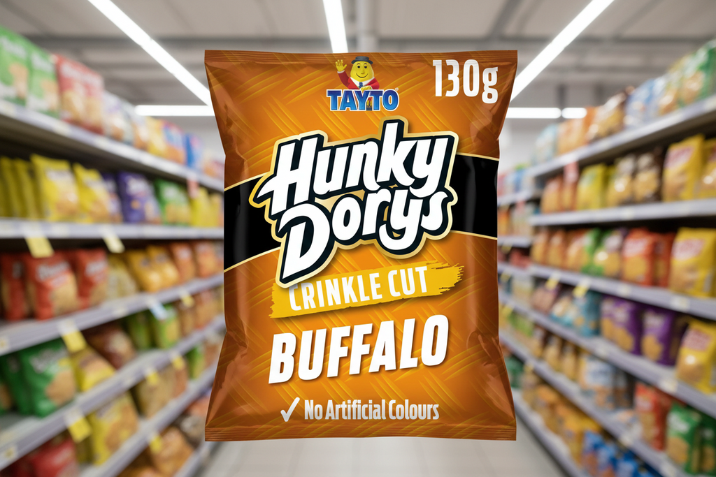 12 x Tayto Hunky Dorys Crinkle Cut Buffalo Flavour Potato Crisps 130G