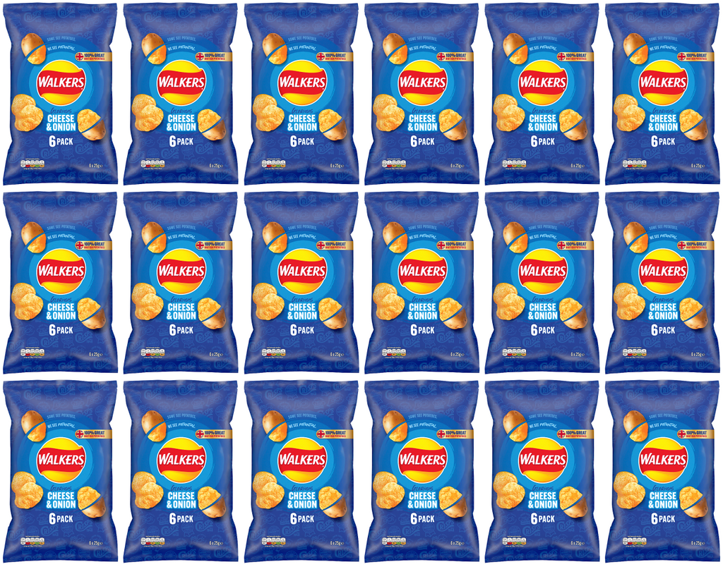 18 x Walkers Cheese & Onion 6Pk 6X25Gm