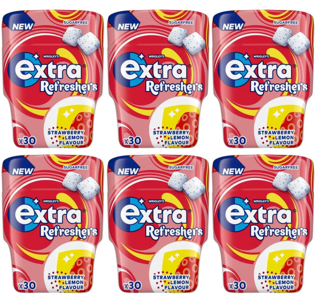 6 x Wrigleys Extra Refresher Strawberry Lemon Sugarfree 67G