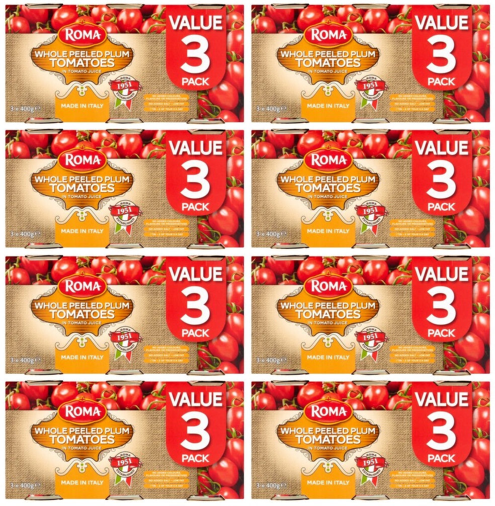 8 x Roma Whole Peeled Tomato 3pk - 3X400G