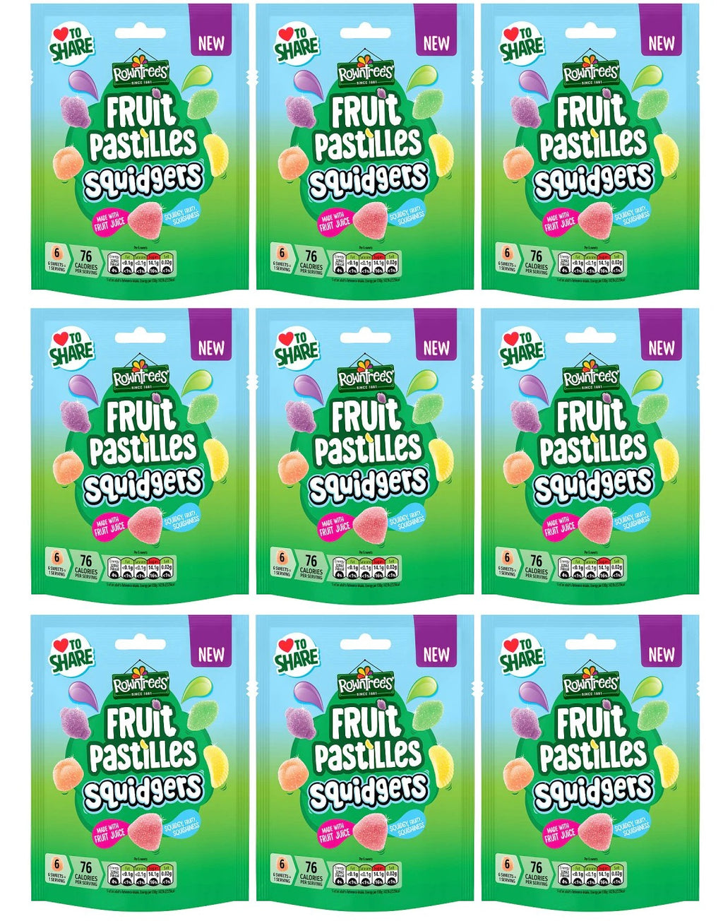 9 x Rowntrees Fruit Pastilles Squidgers Pouch - 120GM